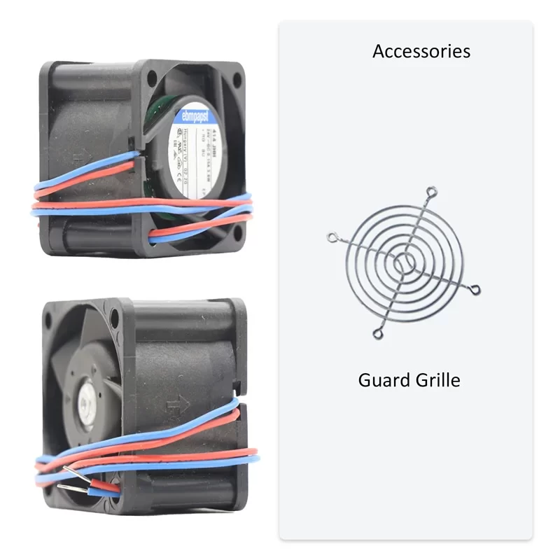 The ebmpapst 412JHH is a powerful yet miniature DC Axial Fan designed for applications requiring maximum air movement in confined spaces. Its precise measuring dimensions are 40 x 40 x 25 mm. This fan operates on a 12 VDC nominal voltage (within a range of 8 to 13.5 VDC) and is capable of reaching a high rotational speed of 13000 RPM. The 412JHH provides an air flow of 24 m3/h while consuming only 3.3 W of power. Built with durable Ball bearings for long life and stability, the fan’s housing and impeller are made from fiberglass-reinforced PBT and PA plastic. The unit is protected against reverse polarity and rotor blockage and is an excellent choice for targeted cooling where minimal footprint and high RPM performance are critical.