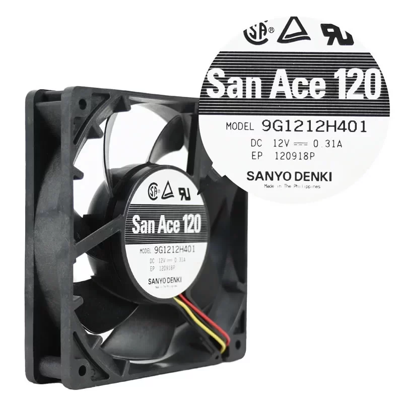 The Sanyo Denki 9G1212H401 DC axial fan is specifically designed for cooling desktop computers, server chassis, industrial control cabinets, telecommunications racks, and electronic power supplies requiring reliable and quiet 12V DC ventilation.