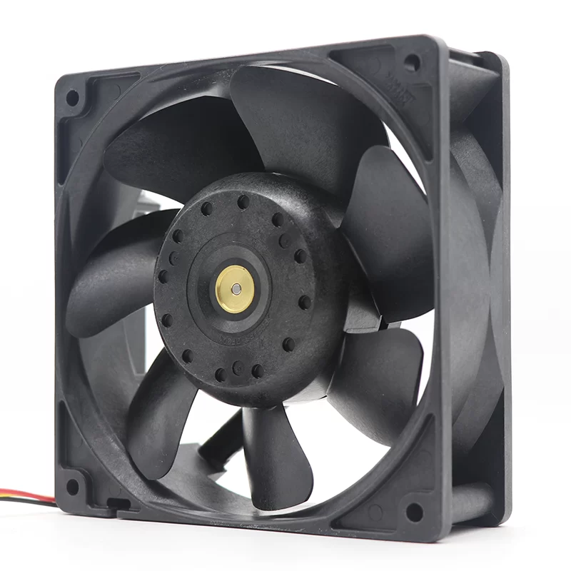 The Sanyo Denki 9G1224E101 is specifically engineered for high-density industrial control panels and network server enclosures where its 120 x 120 x 38 mm UL 94V-1 plastic housing and 3100 RPM performance are required to deliver a constant 118 CFM airflow against system impedance, providing a critical 24 VDC thermal solution for electronic modules that demand 3-wire Tacho monitoring and a 46 dB(A) balanced acoustic profile during 24/7 continuous operation.