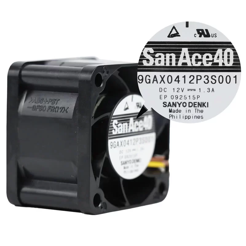 The Sanyo Denki 9GAX0412P3S001 axial fan is the primary cooling solution for 1U server architectures, networking switches, and high-performance industrial power supplies requiring extreme static pressure and reliable airflow in a 40mm configuration.