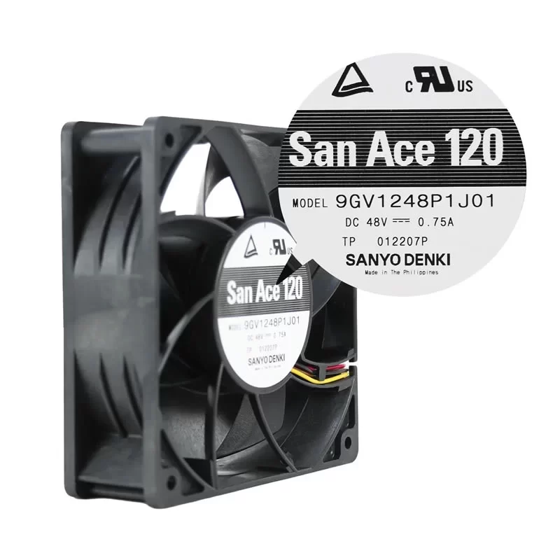 The Sanyo Denki 9GV1248P1J01 high-static pressure axial fan is specifically designed for cooling high-performance 4U/5U server chassis, telecommunications rectifiers, large-scale industrial frequency converters, medical imaging systems, and heavy-duty power conversion units.