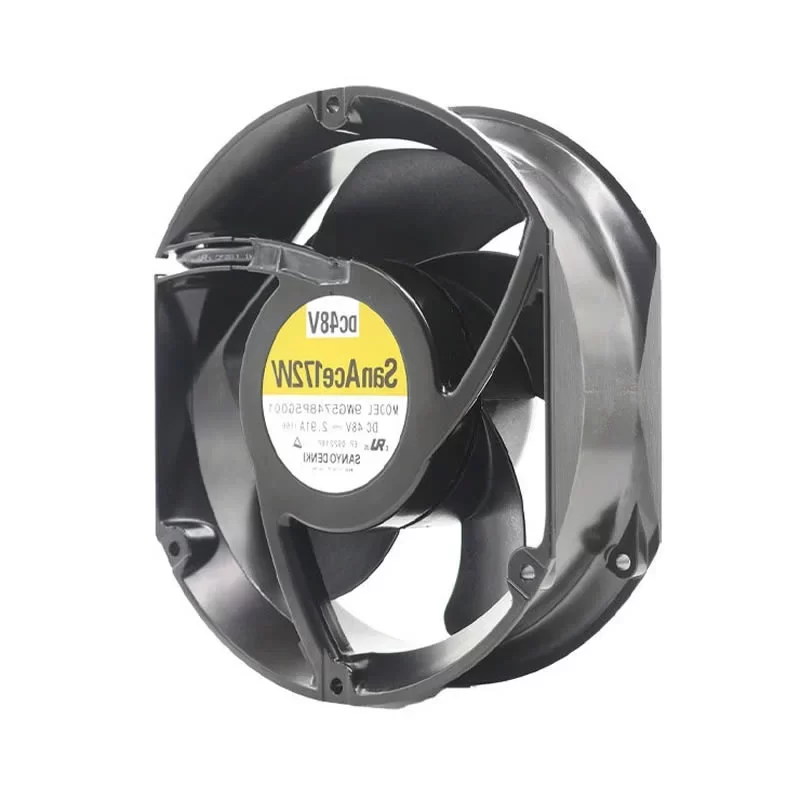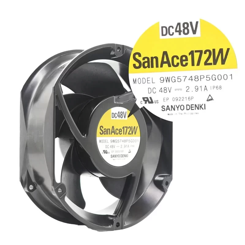 The Sanyo Denki 9WG5748P5G001 splash-proof axial fan is specifically designed for cooling 5G telecommunications base stations, outdoor solar power inverters, EV charging piles, environmental control systems, and industrial equipment operating in high-moisture or wash-down environments.