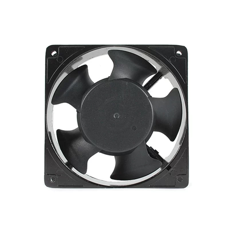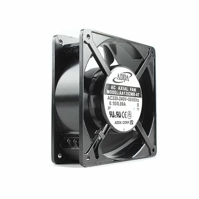 The ADDA AA1282MB-AT is a high-reliability industrial AC Axial Fan with dimensions of 120 x 120 x 38 mm. Driven by a specialized Shaded Pole Induction Motor, this model is engineered to operate directly on a nominal 230 VAC supply. It delivers a steady maximum airflow of 77.0 CFM (130.8 m³/h) at 50 Hz and up to 90.0 CFM (152.9 m³/h) at 60 Hz. With a power input of 20.0 W, it is specifically designed as a primary thermal management solution for industrial enclosures where DC power is unavailable. This model features a premium dual-ball bearing system and a 5-blade high-torque impeller housed in a robust die-cast aluminum frame, which facilitates superior motor heat dissipation. Equipped with two-terminal termination (AT), the AA1282MB-AT provides mission-critical durability for industrial inverters, power distribution cabinets, and heavy-duty machinery requiring constant 24/7 cooling.