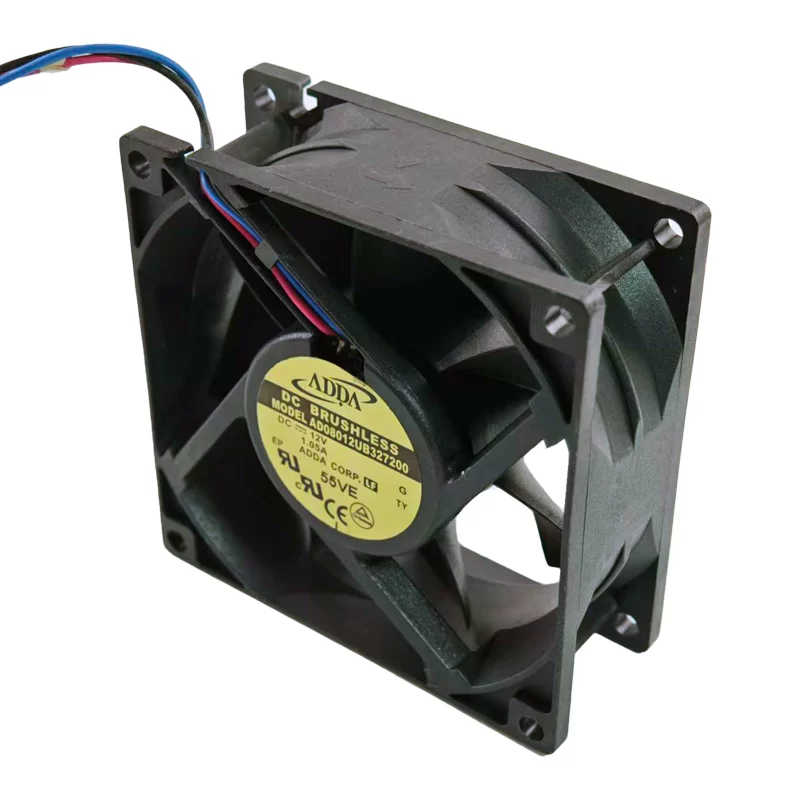 The ADDA AD08012UB327200 is a high-performance DC Axial Fan with dimensions of 80×80×32 mm. It operates on a 12 VDC voltage and uses a Ball Bearing system. Drawing a high rated current of 1.05 A, this 7-blade fan is designed for Ultra-High speed (U) operation to achieve maximum cooling performance.