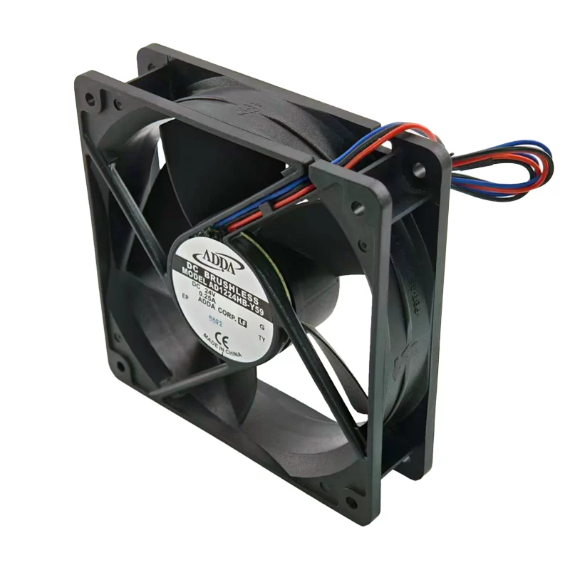 The AD1224HB-Y59 fan is specifically suited for high-reliability cooling of critical electronic components. Typical applications include forced air cooling for industrial inverters, 24VDC power supply units, telecommunication enclosures, and server rack equipment where its high static pressure capability and double ball bearings ensure effective, long-life performance in confined spaces.
