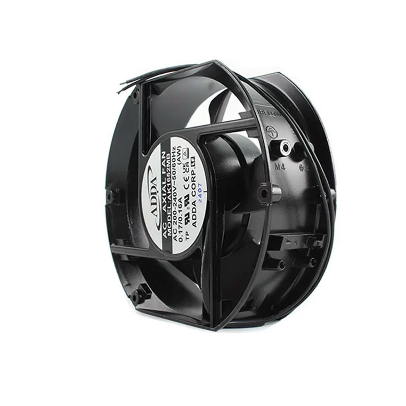 The ADDA AK1652MB is a high-performance DC Axial Fan with dimensions of 172 x 150 x 51 mm. This high-capacity AC fan operates on a nominal voltage of 230 V (ranging from 200 to 240 VAC) and is built with a robust aluminum housing and a UL 94V-0 glass-filled polyester impeller. Capable of delivering airflows up to 11.69 m³/h at 50 Hz, it is specifically designed for environments requiring intensive cooling and high static pressure. This model is commonly deployed in large-scale power distribution units, telecommunications base stations, and heavy industrial machinery where reliable, long-term thermal management is essential.