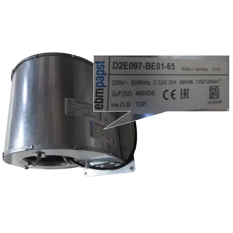 The ebmpapst D2E097-BE01-65 fan is the primary cooling component for laboratory equipment, laser power supplies, and medical diagnostic devices requiring compact 230V airflow from a dual-inlet blower.