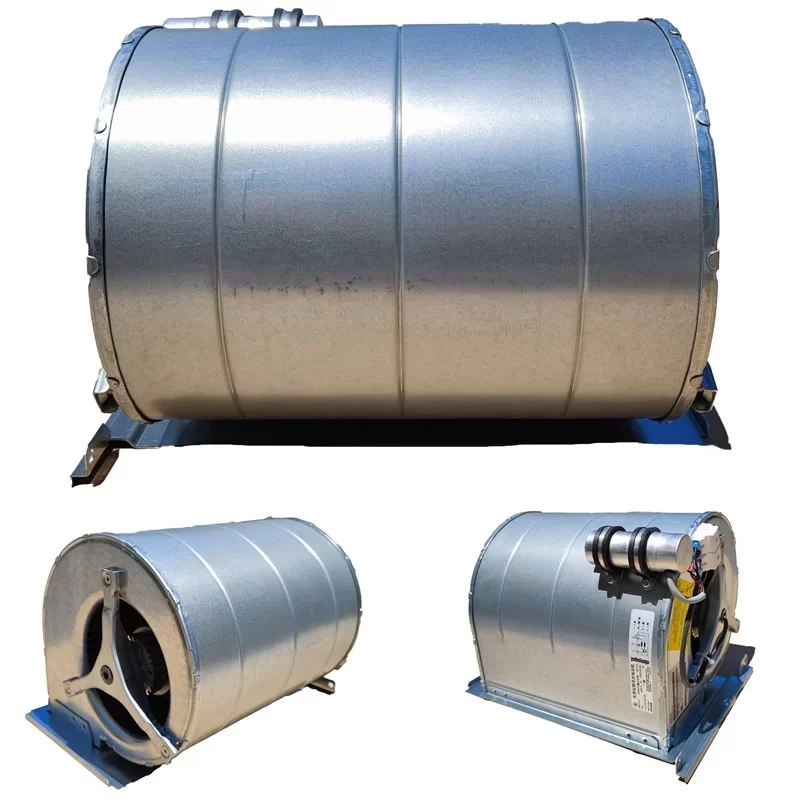 The ebmpapst D2E160-AH01-17, alternatively identified as the Siemens 6SL3362-0AF01-0AA1, is a robust single-phase AC Forward-Curved Centrifugal Fan designed for high-performance thermal management in industrial equipment. This fan has a compact design with a 160 mm diameter and a substantial weight of 11 kg, featuring an M2E074-LA motor. It runs on a nominal voltage of 230 VAC and operates efficiently at both 50 Hz and 60 Hz frequencies. At 50 Hz, the fan achieves a speed of 2780 RPM, consuming 415 W of power with a current draw of 1.82 A. For 60 Hz operation, the speed increases to 3120 RPM, with a higher power consumption of 635 W and a current draw of 2.78 A. This unit can achieve a maximum static pressure of 760 Pa and deliver an airflow of up to 1195 m3/h. Key construction features include a steel impeller and housing with hot-dip galvanization, an IP00 degree of protection, and an insulation class of “F”. The fan utilizes a reliable Ball bearing system and includes an internal Thermal Overload Protector (TOP) for motor protection. It is approved to standards including CCC, UL 507, and CSA C22.2 No. 113. Its primary application is as a critical replacement cooling component for power converters, generators, and drive units, specifically for Siemens SINAMICS/MICROMASTER PX series modules.