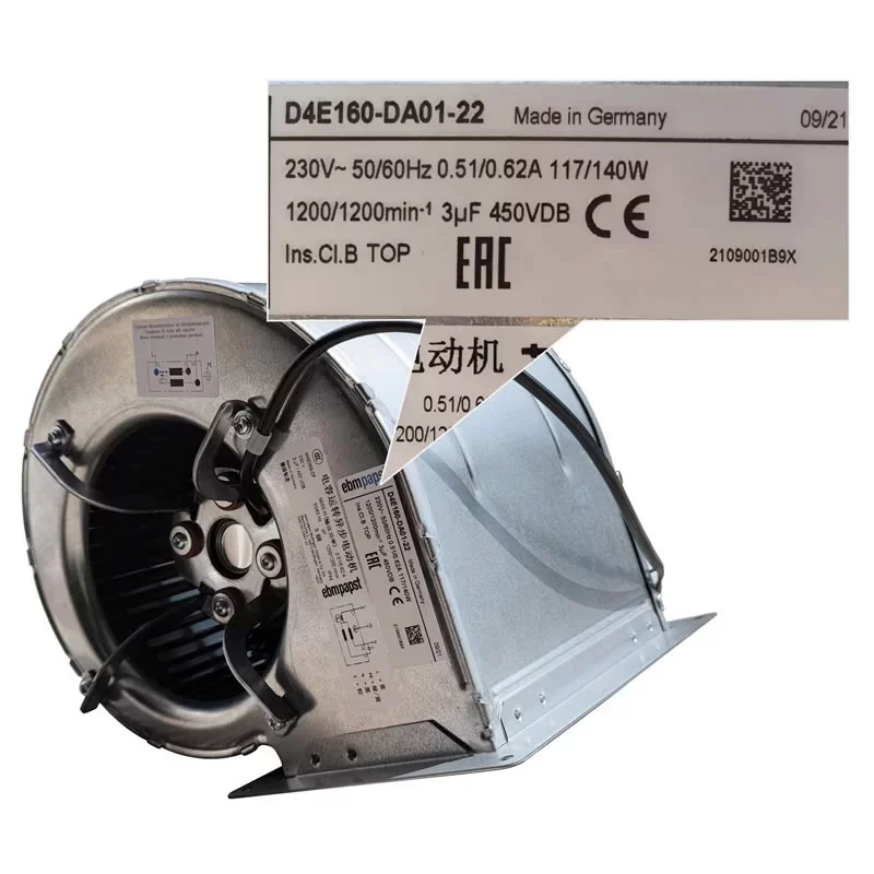 The ebmpapst D4E160-DA01-22 fan is the primary cooling component for central air conditioning units, laboratory ventilation systems, and industrial enclosures requiring high-volume 230V airflow from a dual-inlet flanged blower.