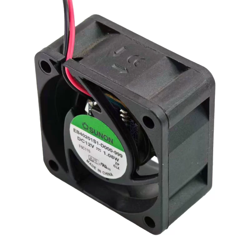 The SUNON EB40201S1-D000-999 is a high-performance industrial DC Axial Fan with dimensions of 40 x 40 x 20 mm. Driven by a precision Brushless DC Motor, this model is engineered as a robust cooling solution operating on a nominal 12 VDC. It delivers a maximum airflow of 8.9 CFM (15.1 m³/h) at a rated speed of 7200 RPM, with a power input of 1.08 W and a rated current of 0.09 A. Specifically designed for high-density electronic enclosures, it features a 5-blade aerodynamic design and a reliable sleeve bearing system optimized for stable operation under high back-pressure conditions. With its compact 40 mm footprint and two-wire termination, the EB40201S1-D000-999 provides essential thermal management and high static pressure (0.210 inH2O) for industrial inverters, localized power modules, and compact automation hardware.