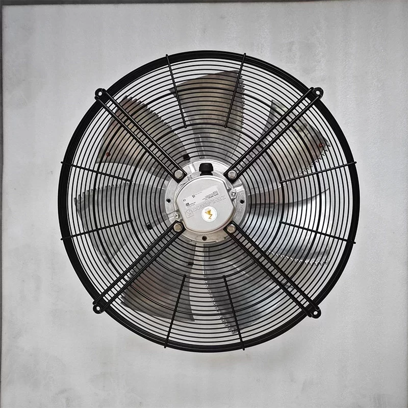 The ZIEHL-ABEGG FN063-VDK.6N.V7P7 is a high-performance 400VAC three-phase AC Axial Fan featuring 630 mm specialized aerodynamic sickle-shaped aluminum blades and a high-torque external rotor motor, specifically engineered for mission-critical cooling in Industrial Frequency Converters and specialized AHU systems. Driven by a precision-balanced motor with maintenance-free ball bearings and moisture/hot climate protection, this 32.00 kg unit operates at 400 VAC / 50 Hz using a Delta/Star (D/Y) connection to provide dual-speed flexibility, delivering a Max. Power Consumption of 2.70 / 1.75 kW and a Max. Current Draw of 5.00 / 3.00 A at a rated speed of 1330 / 1040 RPM. This High-performance unit features a specialized aerodynamic 7-blade aluminum impeller achieving a Max. Air Flow of 15200.0 / 12100.0 m³/h (8946.3 / 7121.7 CFM / 253.33 / 201.67 m³/min) and a Max. Static Pressure of 25.50 / 15.30 mmH₂O (250.0 / 150.0 Pa / 1.00 / 0.60 inAq). Featuring a “Made in Germany” robust construction with integrated thermal contacts (TB) for motor protection and a jet black powder-coated suspension (RAL 9005), this IP54-rated fan is optimized for environments requiring high reliability and high-capacity airflow in industrial VFD systems at the end.