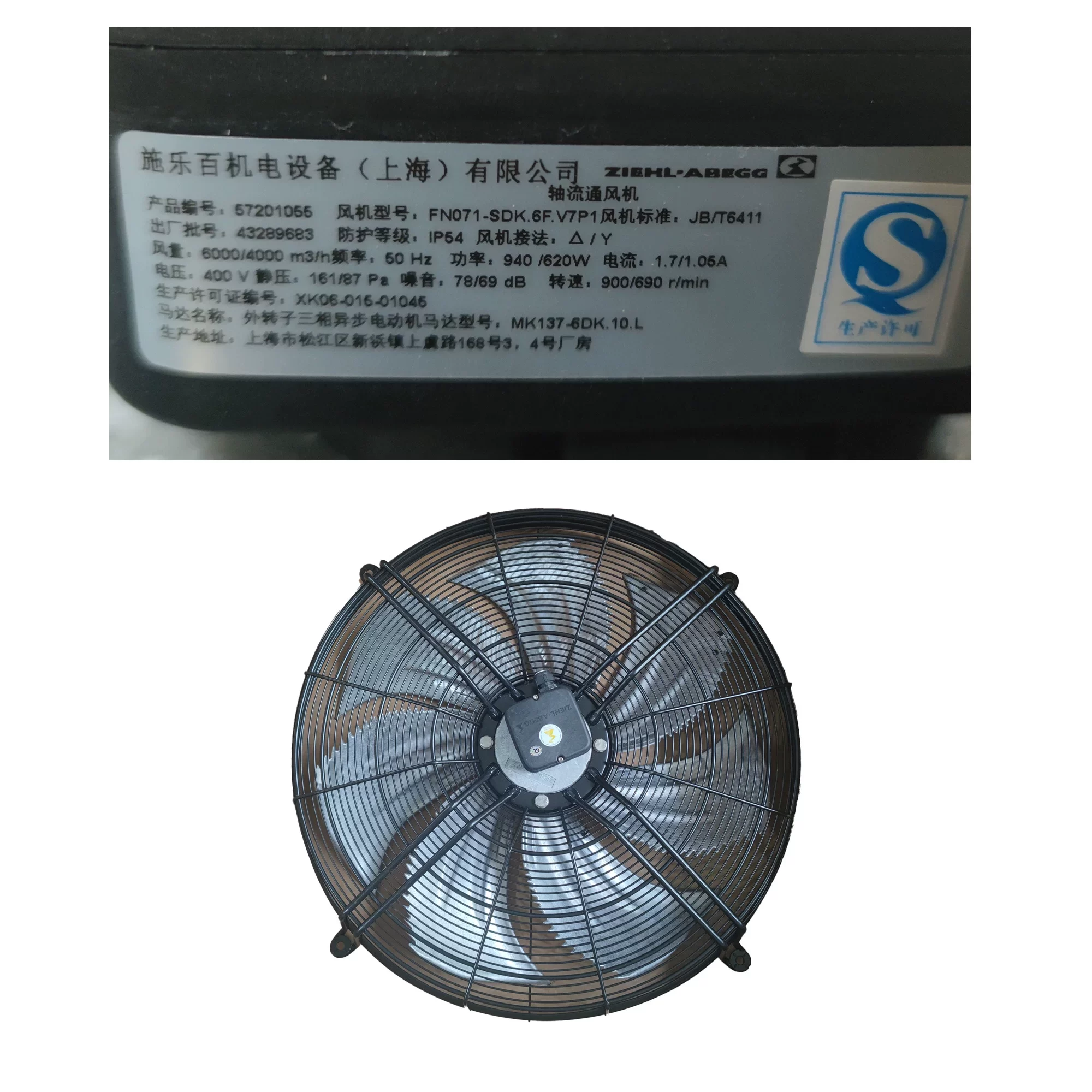 Manufacturer: ZIEHL-ABEGG (Made in Germany)