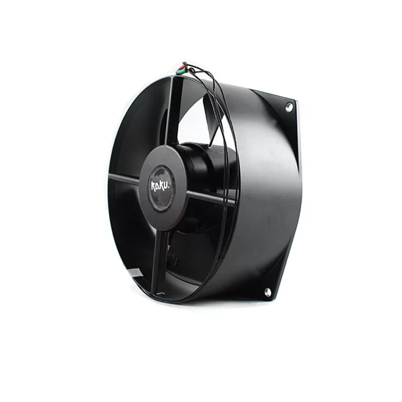 The KAKU FZY2004-D is a high-performance 380 V industrial 3-phase AC axial fan with dimensions of 210 x 206 x 73 mm and an impeller size of 200 mm, purpose-built to deliver elite-level thermal cooling in high-resistance airflow paths. This unit features a heavy-duty external rotor motor capable of sustaining a 56 W power input (at both 50 Hz and 60 Hz) to drive its specialized high-velocity impeller at speeds of 2800 RPM or 3200 RPM respectively. Engineered specifically for air displacement in heavy-duty machinery and industrial power suites, it utilizes a 73 mm deep reinforced housing to provide balanced pressure and airflow for mission-critical hardware. The mechanical design relies on precision maintenance-free ball bearings and a black-painted rotor to ensure reliable continuous operation across an ambient temperature range of -30 °C to 70 °C. Featuring a robust 3-phase electrical interface with lead wire termination and an IP54 protection rating, this fan is a critical component for welding machines, frequency converters, and power distribution systems where long-term reliability and high aerodynamic efficiency are mandatory.