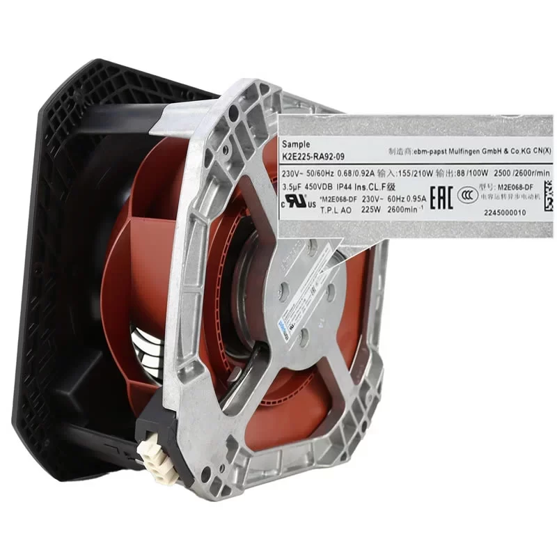 The ebmpapst K2E225-RA92-09 centrifugal fan is primarily utilized in air conditioning units, high-performance air purifiers, heat recovery ventilation (HRV) systems, and industrial cabinet cooling.