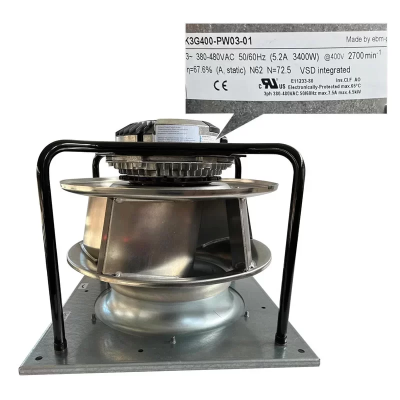 The ebmpapst K3G400-PW03-01 is used in high-efficiency air handling units (AHU), data center precision cooling, cleanroom ventilation, industrial heat exchangers, and smart building HVAC systems.