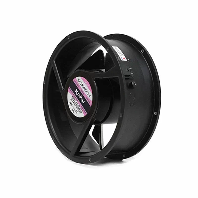 The KAKU KA2208HA1-4 fan is the primary cooling component for high-altitude electronics, outdoor cold-climate electrical enclosures, and industrial power conversion systems requiring high-volume 110V AC axial airflow in a 222mm magnesium alloy form factor.