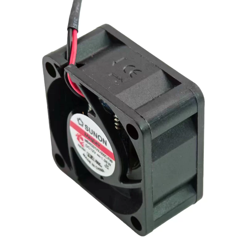 The Sunon MB40201VX-000C-F99 is specifically engineered for high-density cooling in mission-critical 12V environments where space is limited but consistent airflow is required to maintain the stability of 1U server chassis, industrial micro-controllers, and high-performance network switches, utilizing its 20mm frame depth and 5-blade high-efficiency impeller to provide effective heat extraction while the 8200 RPM rotational speed and Vapo Bearing technology ensure friction-free operation and long-term reliability in enterprise applications where a lightweight 30.84g construction and quiet 27.5 dB(A) performance are vital for maintaining system uptime.
