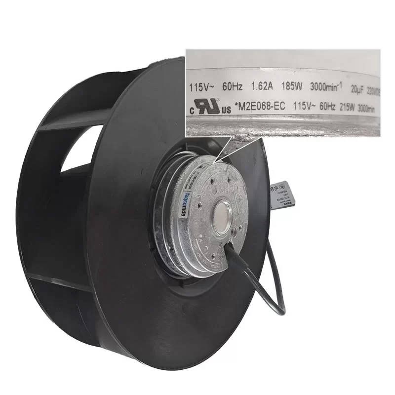 The ebmpapst R2E225-BE51-13 motorized impeller is specifically engineered for high-efficiency air handling and cabinet ventilation where its 225 mm backward-curved PA6 impeller and 115 VAC external rotor motor are required to deliver high-velocity airflow at 3000 RPM, while its 215 W power capacity and internal thermal overload protection ensure reliable 60 Hz operation and mission-critical heat dissipation in hardware environments from -25 °C to 55 °C.
