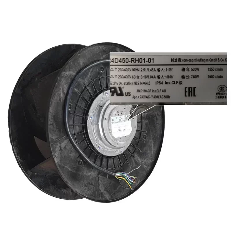 The ebmpapst R4D450-RH01-01 centrifugal fan is widely used in large-scale HVAC air handling units, industrial heat exchangers, data center cooling systems, cleanroom ventilation, and commercial refrigeration condensers.
