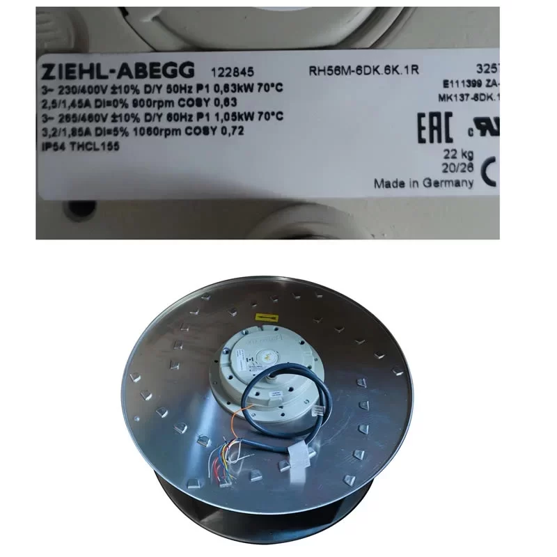 The Ziehl-Abegg RH56M-6DK.6K.1R centrifugal fan is used in large-scale HVAC air handling units, data center precision cooling systems, cleanroom ventilation, industrial drying equipment, and modular rooftop cooling units.