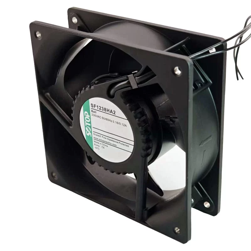 The SOTOP SF1238HA2 fan is the primary cooling component for server racks, industrial power supplies, and communication base stations requiring stable 230V airflow and robust mechanical construction.