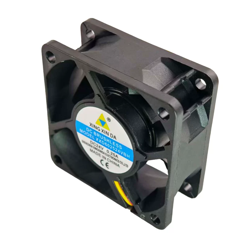 The XINGXINDA XXD602524VBH is a high-performance DC Axial Fan with dimensions of 60 x 60 x 25 mm. It operates on a nominal voltage of 24 V DC with a current draw of 0.25 A. This fan is designed for cooling high-density electronic assemblies, power modules, and compact industrial control units where the 24V DC standard is utilized and aggressive airflow is required in a small footprint.